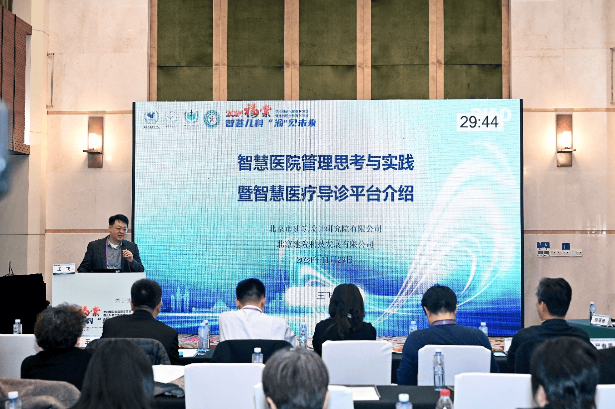 2024年12月1日,“福棠儿科学学科规范化建设学习班”暨“2024年福棠儿科医学教育学习班”在山城重庆圆满落幕。大会以“智荟儿科,‘渝’见未来”为主题,由福棠儿童医学发展研究中心联合国家儿童医学中心首都医科大学附属北京儿童医院共同主办,重庆医科大学附属儿童医院承办。北京市建筑设计研究院股份有限公司受邀参会,副总工程师、医疗建筑研究中心副主任、数字科技研究院党支部书记王飞代表公司出席,并在医疗健康大数据分会上进行专题宣讲。