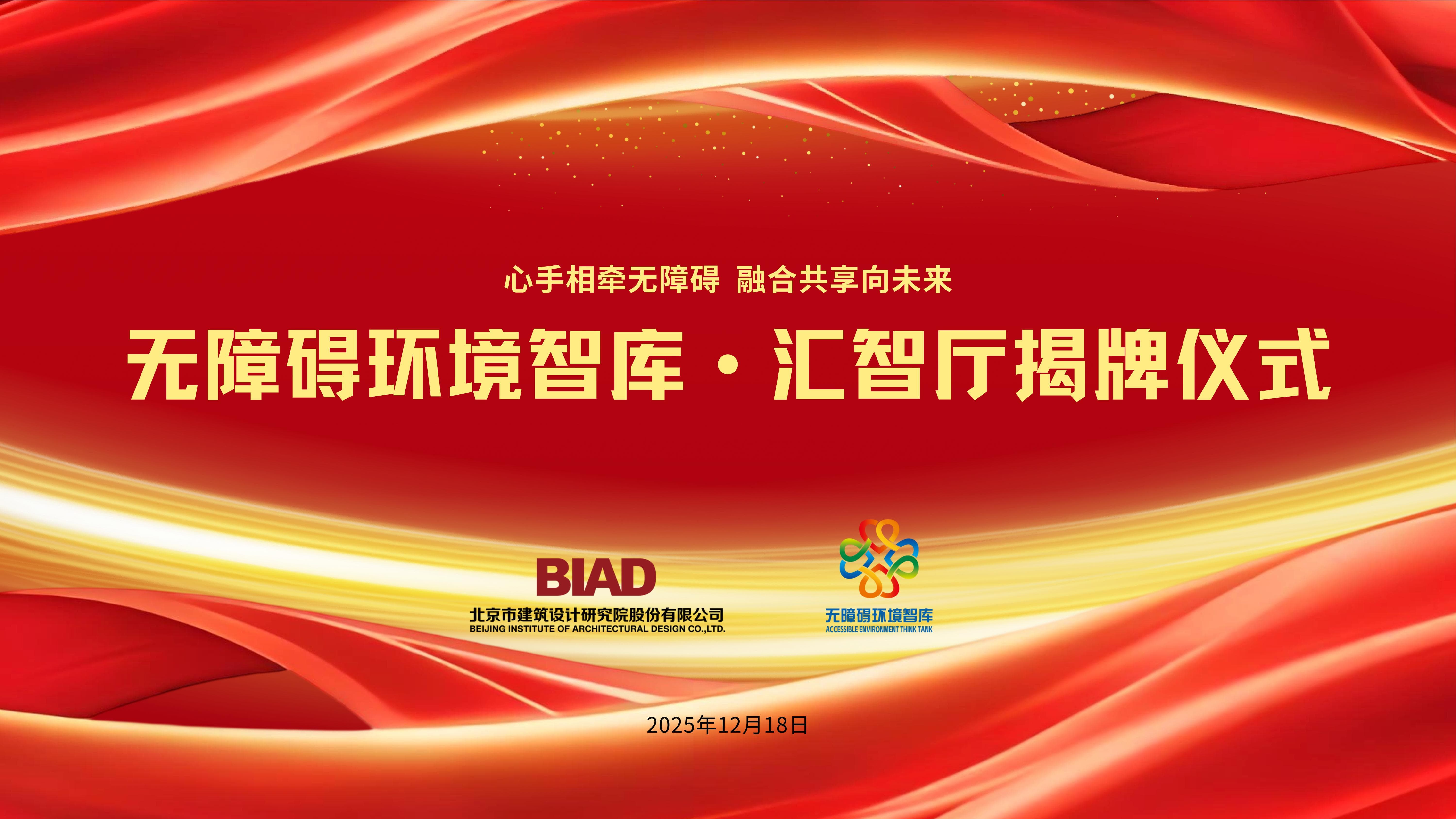 2025年12月18日下午,“无障碍环境智库·汇智厅”揭牌活动在北京市建筑设计研究院股份有限公司礼士书房举行。“汇智厅”由中国助残志愿者协会发起、北京建院承办,目标是联合打造无障碍环境建设的专业智库与交流平台,汇聚行业智慧,推动无障碍环境建设高质量发展。