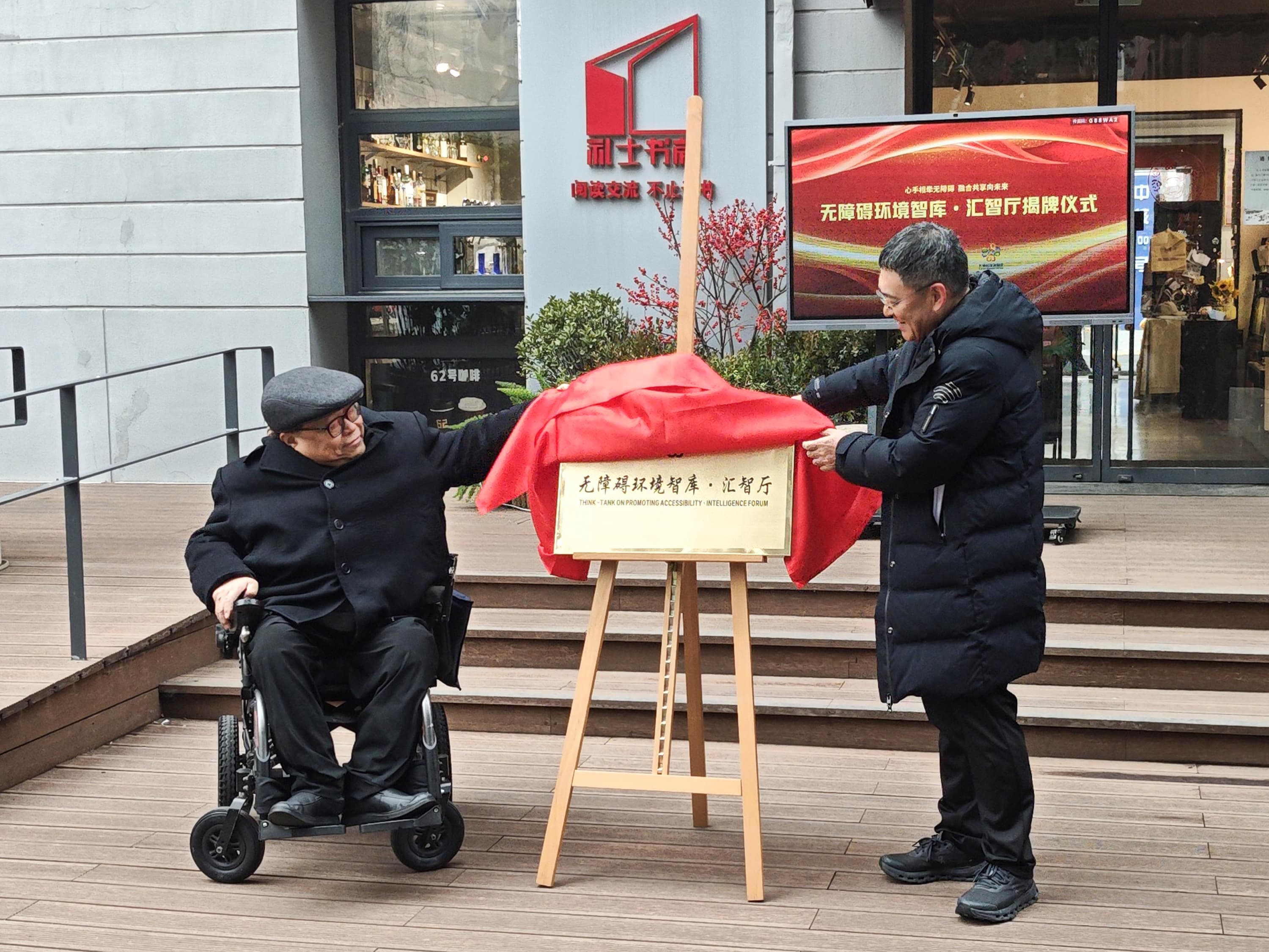 在与会嘉宾的共同见证下,吕世明和徐全胜共同为“无障碍环境智库·汇智厅”揭牌,标志着全国首个无障碍环境建设专业智库与实体交流平台正式启用。